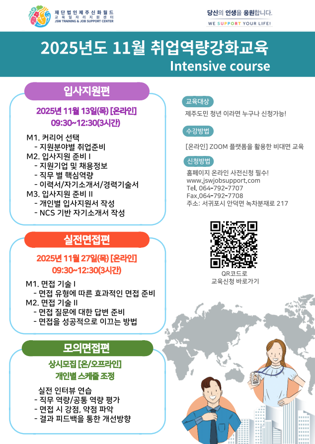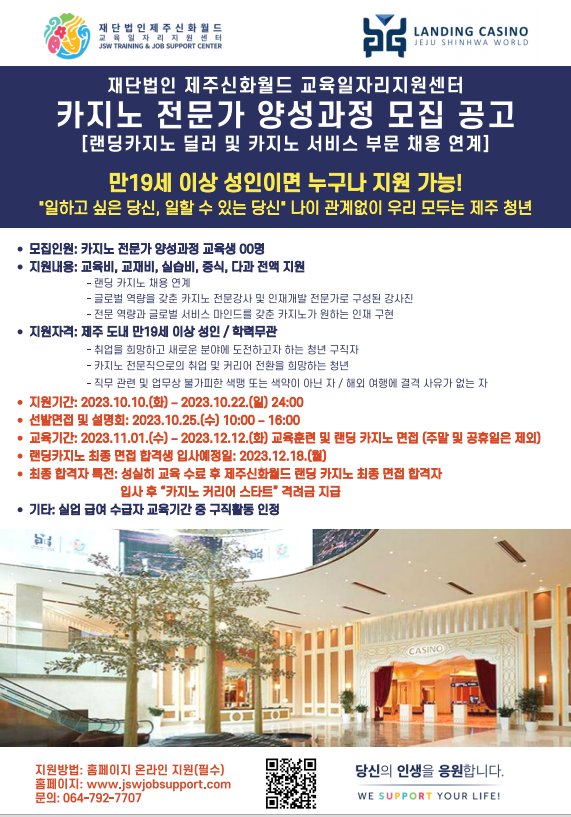 재단법인 제주신화월드교육일자리지원센터의 다양한 프로그램들을 체험해 보시기 바랍니다.